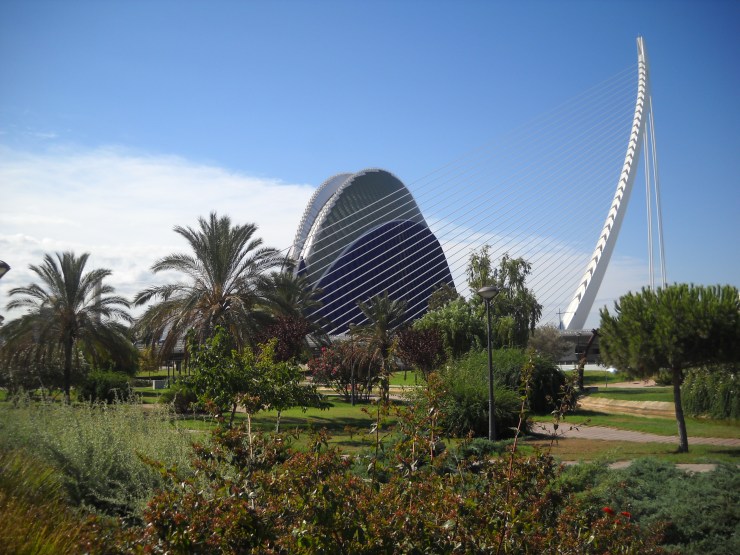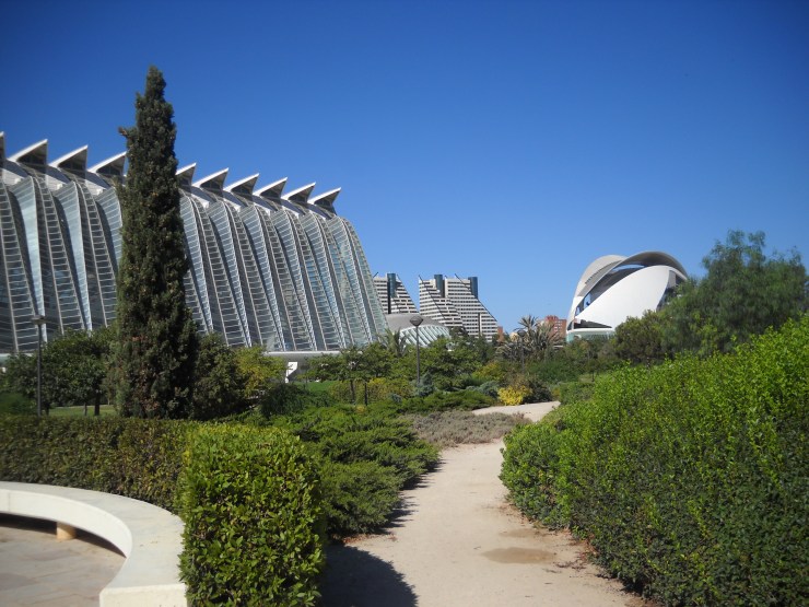 We asked at our hotel where the nearest tourist bus stop was and the lady explained to us that if we went to the city of arts and sciences we would find a bus stop there, brilliant, off we went on our mission. We set sail, with our shiny new set of wheels, for the city of arts and sciences and o what a city it is. I have to say, once I stepped foot in this so-called city of arts and sciences something very strange happened to me: I was left speechless. What a site to behold, a picturesque garden set against a backdrop of modern dome like buildings, one a deep blue shade, another a long glass dome and finally, at the very furthest point, a stone dome covered in the most colourful flowers you could ever set your eyes on. Beautiful, much more so than my words give it credit for!